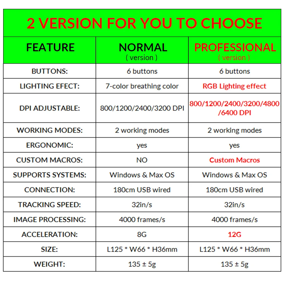 6 Adjustable DPI Gaming computer Mouse 800 , 1600 , 2400 ,3200, 4800 , 6400 DPI
