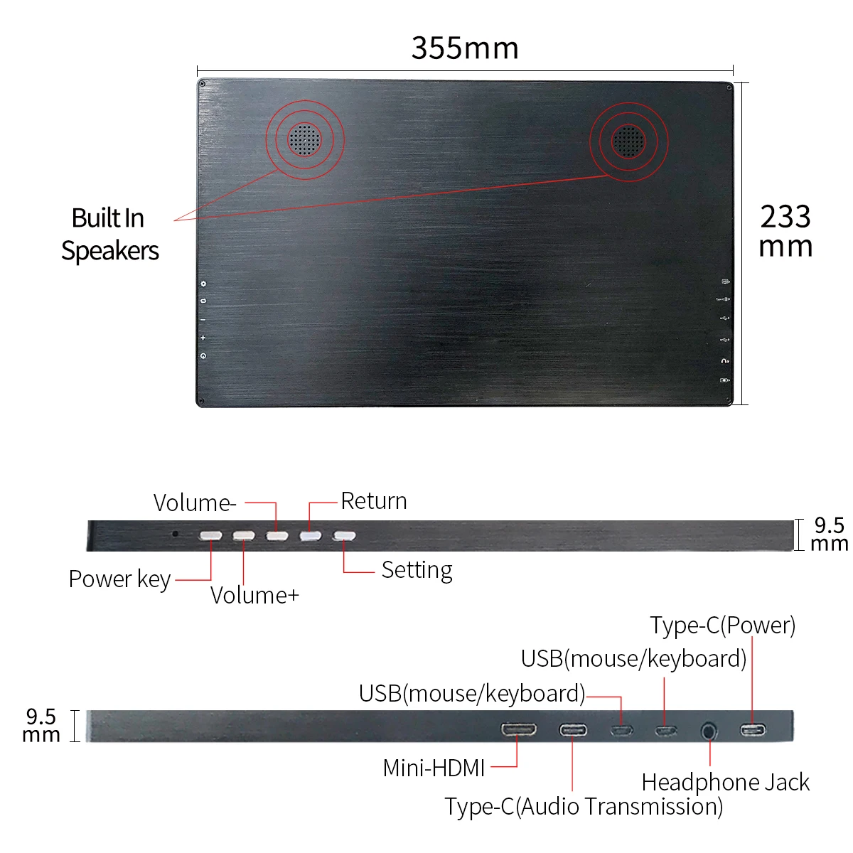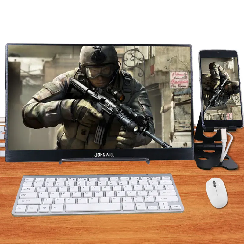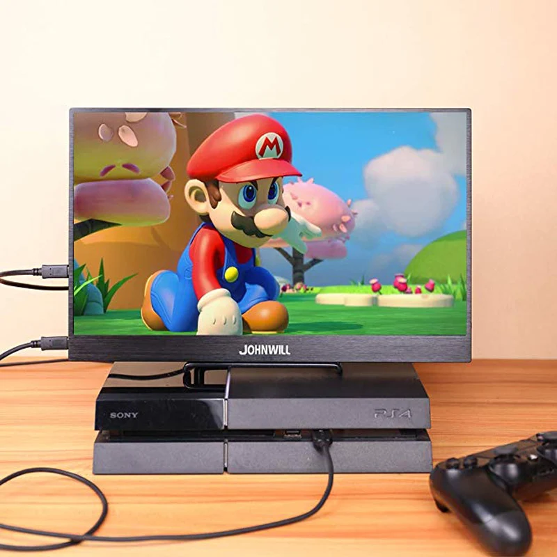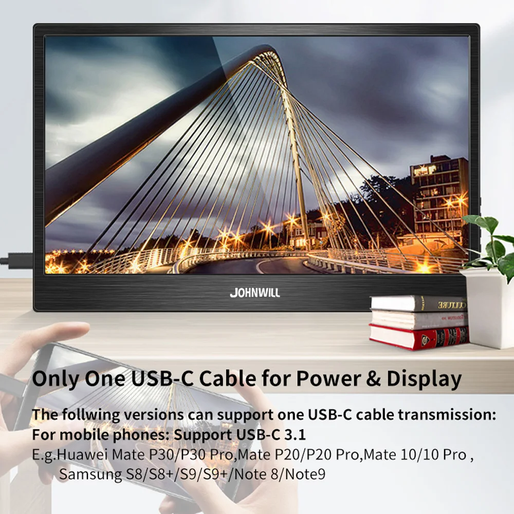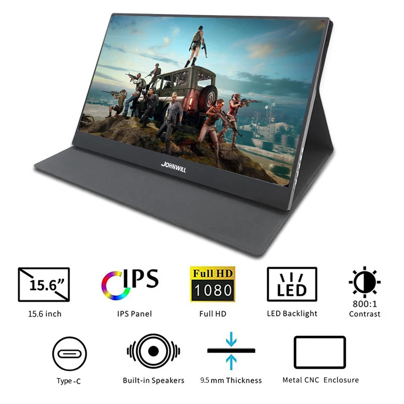 15.6 inch portable HDMI Gaming monitor Use USB C Technology : Two USB-C interfaces:One for powered and the other interface for data audio transmission Compatible With Connecting Various Devices Such as: Laptop, Mini PC, MAC mini Macbook Surface Book Raspberry Pi 3 2 1, XBOX 360