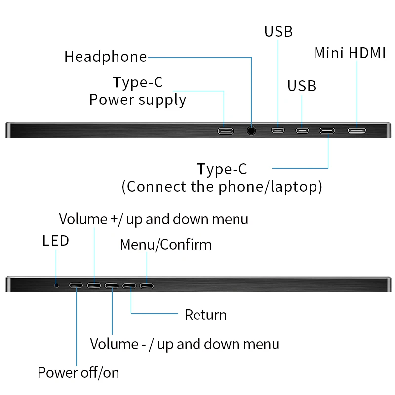 1--15.6 inch HD(1920X1080) Resolution IPS Full angel Portable Monitor;Outdoor Readable, support Multi- language.