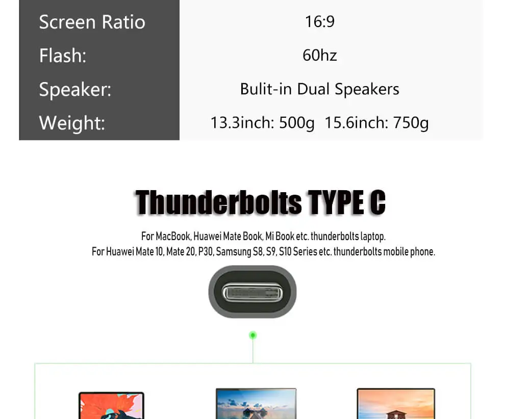 A: ZEUSLAP Portable Monitor only support the Thunder TYPE-C laptop via TYPE-C cable.