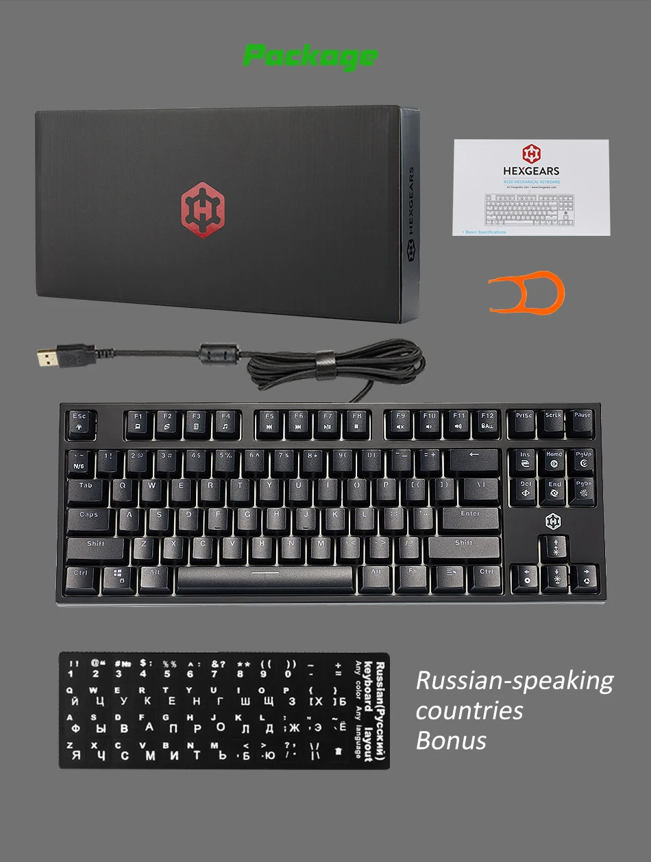 ●If you are not satisfied with our products or service, please feel free to contact us, we will try our best to solve your problem!●Please do not leave a negative feedback without any communication. Thanks for your understanding in advance!●If you have any problems, please feel free to contact us.FAQ Q: What is the HEXGEARS? A: Hexgears is a global Consumer Electronics company specialized in PC and mobile peripherals. We develop and market personal peripherals for the PC Gaming, PC Navigation and Music.Q: Why do you choose HEXGEARS?A: Because of the hardest Kailh Switch among cherry switch and MX switch. And this is the first choice for professional E-sport Gamer.Q: All the products are original?A: Yes, all of our products are 100% original as we have the authorization of the brand, please do not be worry about that.Q: All the products have retail box?A: Yes, all of our products are with retail box.Q: How long will it take?(AliExpress Standard Shipping)A: The good should arrive within 16-30 days via AliExpress Standard Shipping.Brand Story