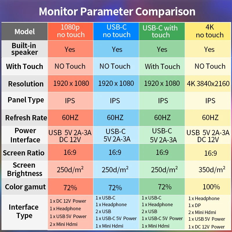 Best Price Comparison With 15.6 inch Portable monitor touch screen PC IPS LCD Display 1080p 4k HDMI USB Type C DP for laptop ps4 switch xbox gaming monitor
