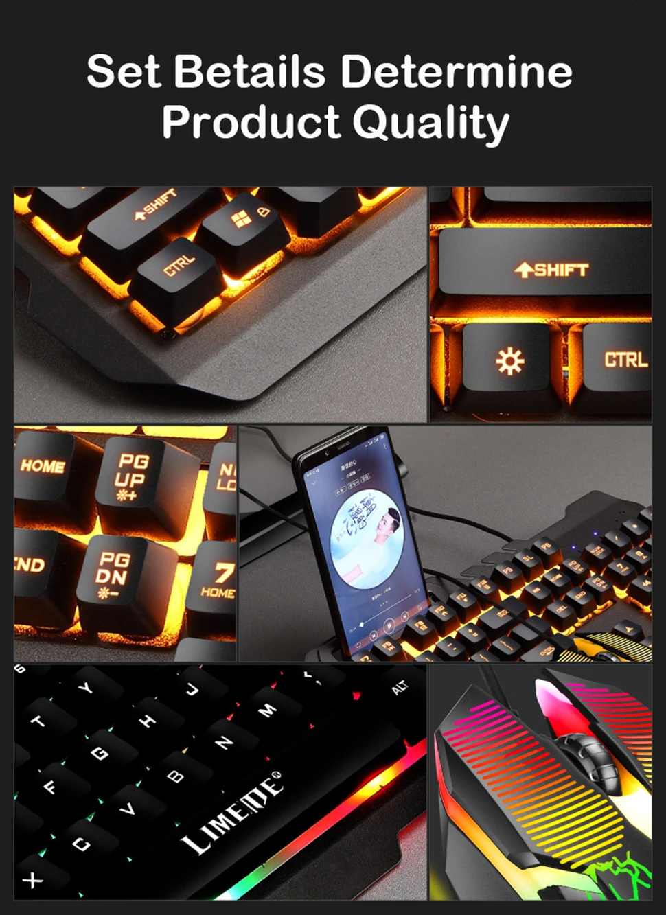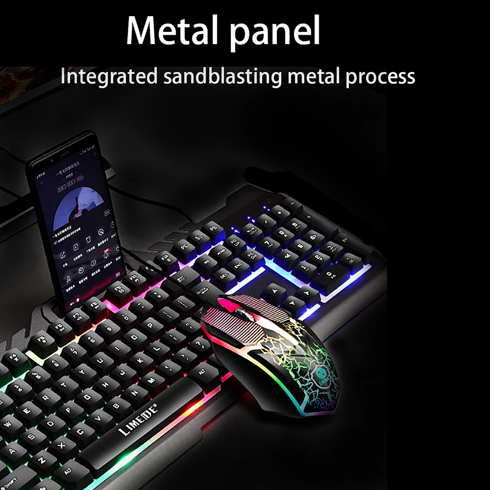 | Gaming Mouse Keyboard Sets Phone Holder Metal Mechanical Feel Wired Keyboard LED Gamer With RGB Backlight Support PC Keyboard |